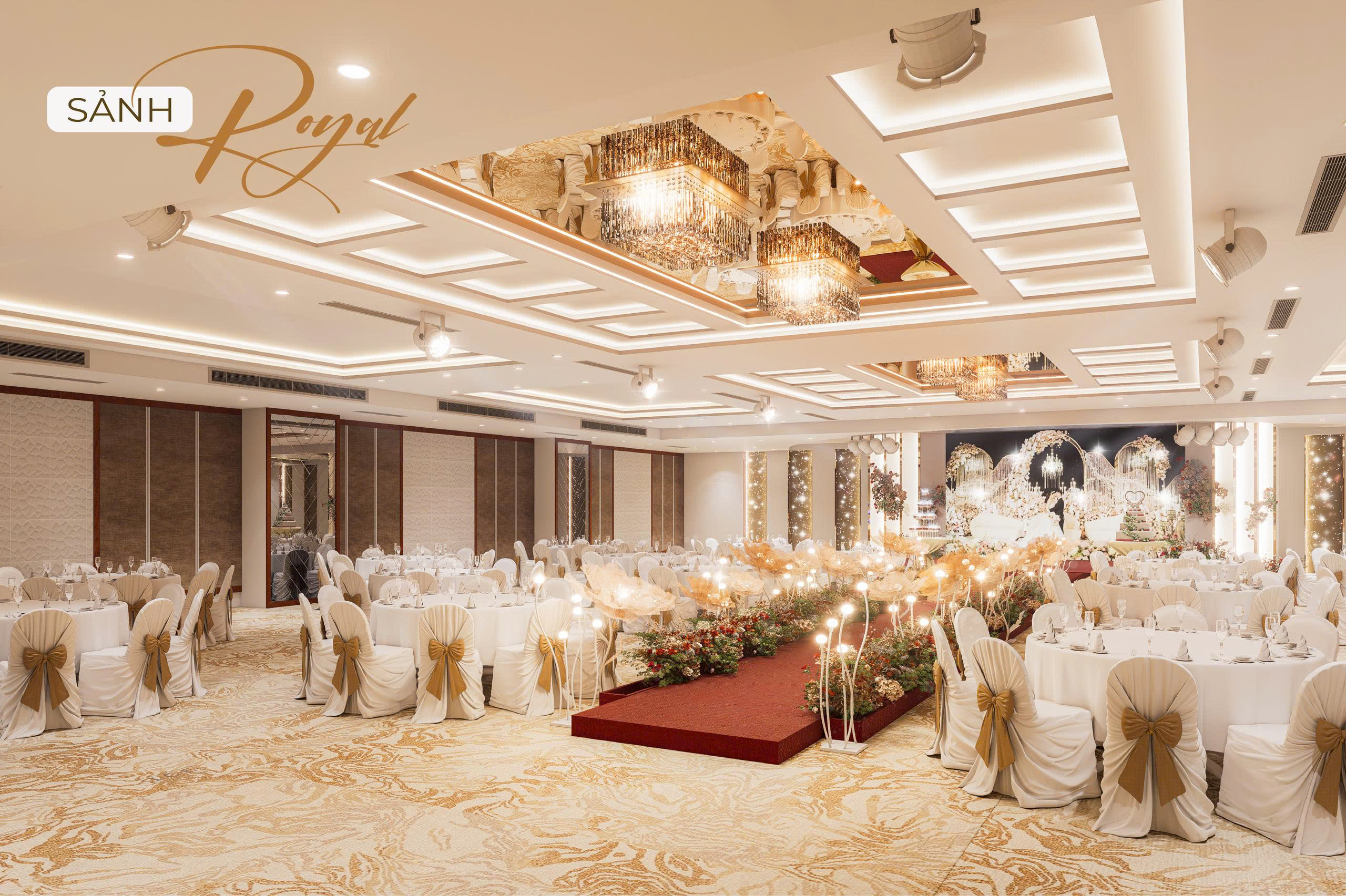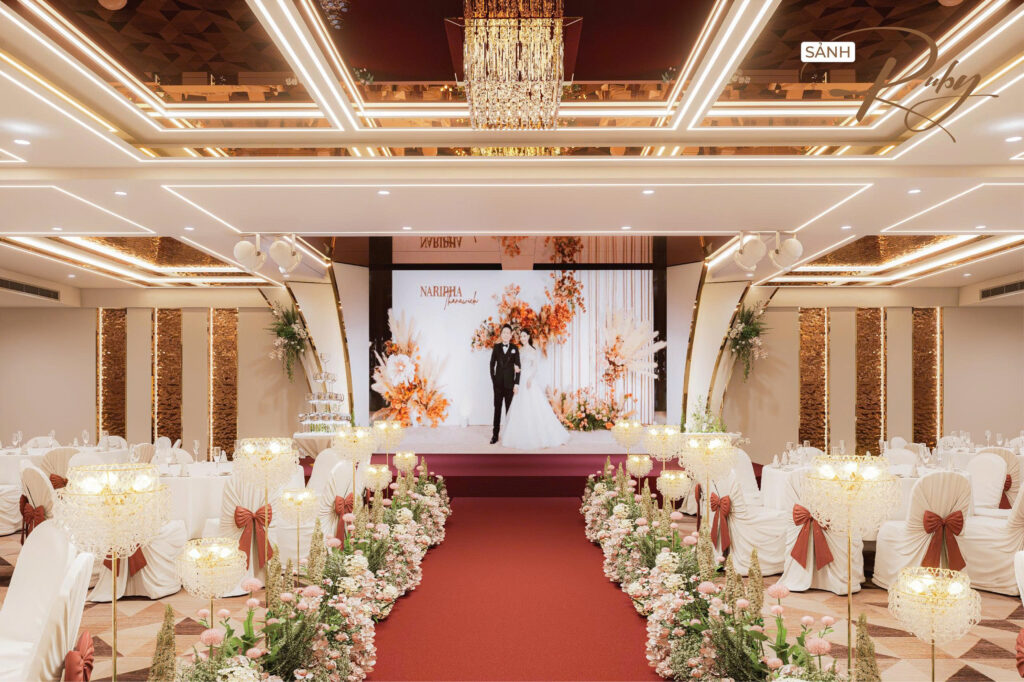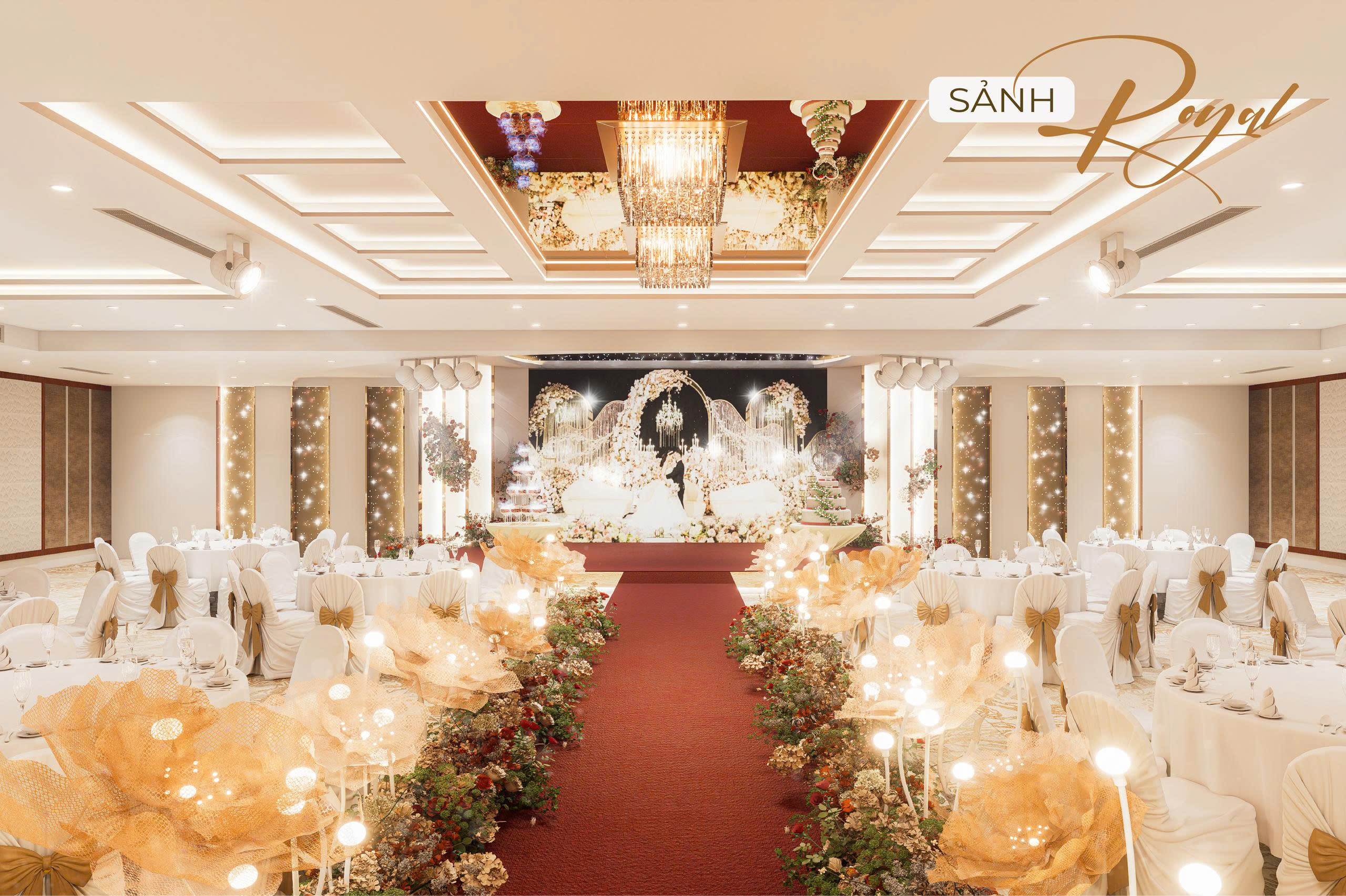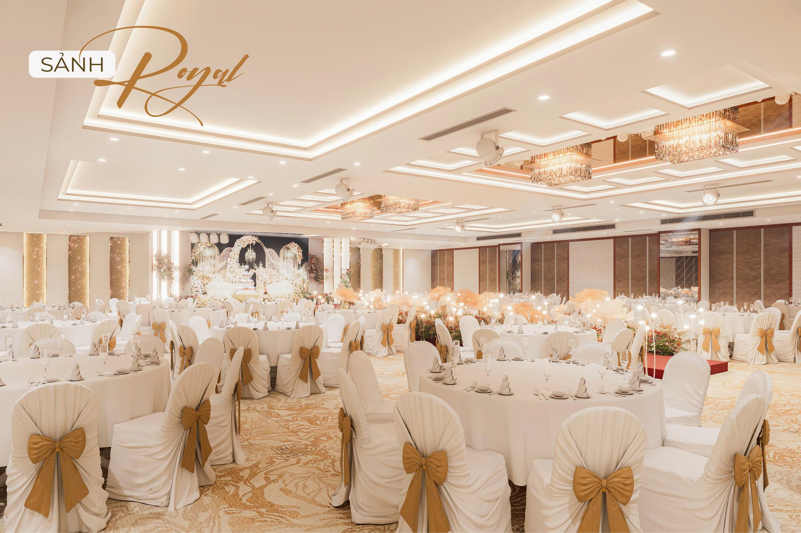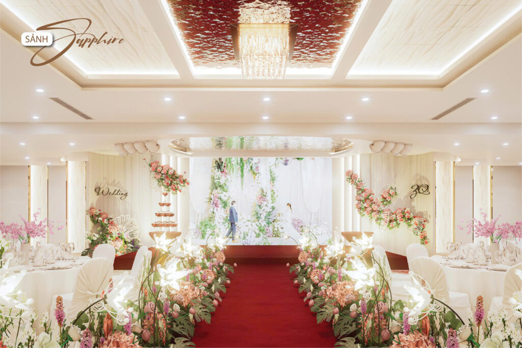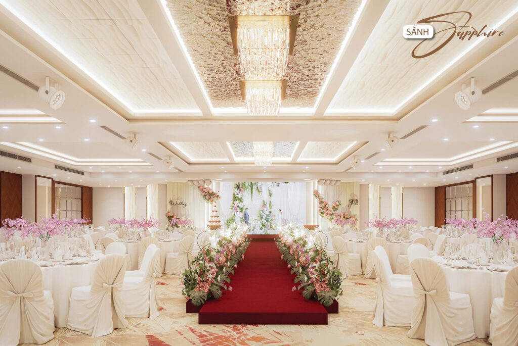 Nhằm hướng đến sự phục vụ HOÀN MỸ hơn dành cho Khách hàng. Những thực đơn đa dạng, không gian lộng lẫy – sang trọng cùng với các dịch vụ hoàn hảo… sẽ mang đến cho quý Khách hàng một sự kiện ấm cúng, sang trọng nhiều ý nghĩa. Với các chùm đèn pha lê được thiết kế sang trọng, mỗi sảnh đều có một sảnh đón khách riêng biệt.